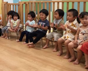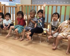 “ぼくたちも手をあげなきゃ!”と0歳児クラスのお友だちも
