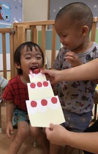 先週8月生まれのお友だちの誕生会をする予定でしたが、