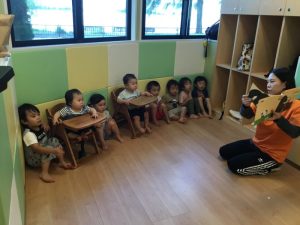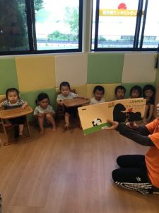 保育者が読んだセリフを真似ていう姿も🦍