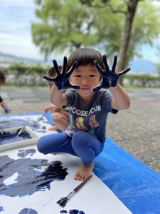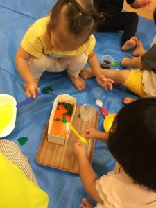 みんな自分たちの手や足に絵の具を塗り始めました😆