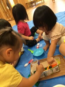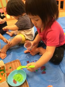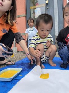 いつもダイナミックに感触遊び楽しんでくれる子どもたち!