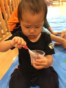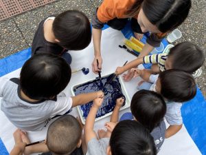 みんなで絵の具をぐるぐるとかき混ぜ🌀