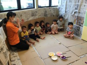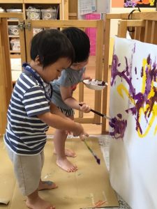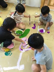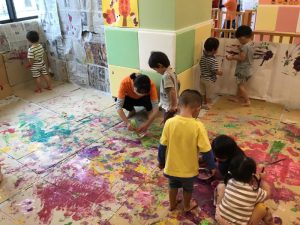 りんご組の子どもたちは、絵の具遊びも楽しみました!