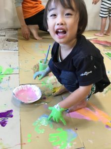 絵の具の感触を味わいながら楽しんでくれていました^^