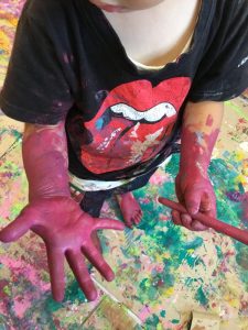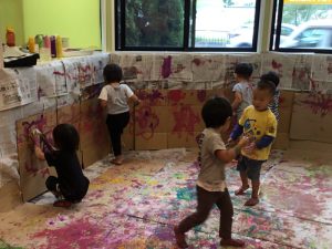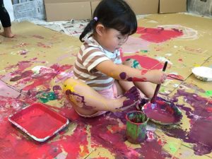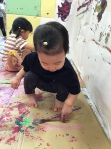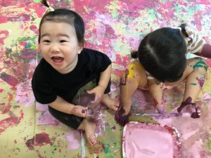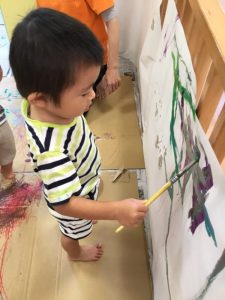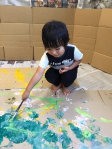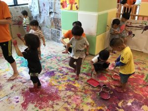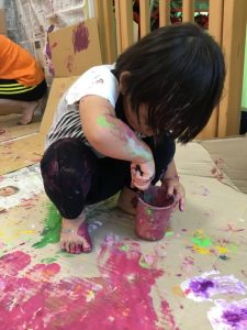 絵の具遊びがスタートすると、