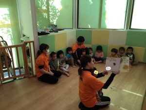 先日どんぐりを拾いに行った事を思い出して教えてくれるこどもたち!
