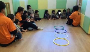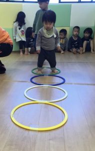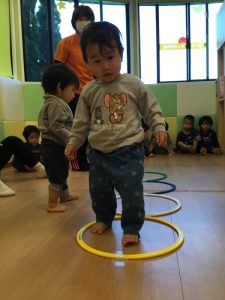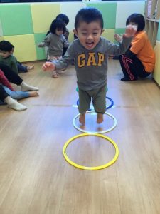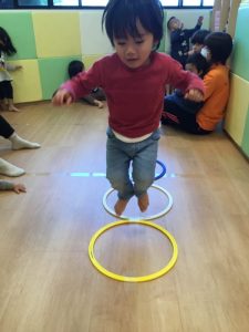 「フラフープを使ってジャンプできるかな?」と聞くと