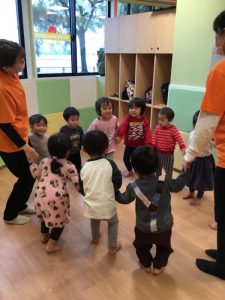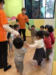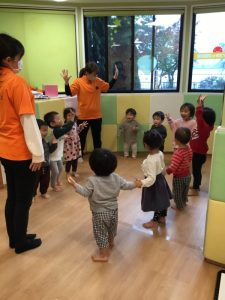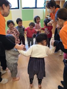 お友だちと手を繋いでリトミックスタート!
