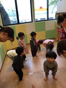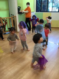 歌の後はたぬきになりきって保育室をお散歩!