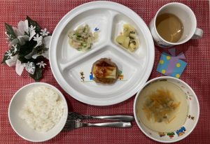 12月のお誕生日会でした。子どもたちの大好きな献立です。おやつにはいちごがでました♡甘酸っぱいいちごを嬉しそうに食べてくれていました。