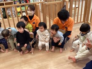 みんなの前に座りドキドキが止まらない子どもたち👦🧒