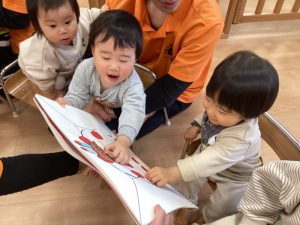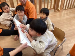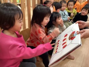 子どもたちが大きな声で誕生日のお友だちの名前を呼ぶと
