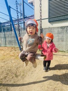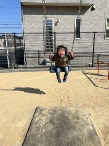 「あ!止まりそうだよ!〇〇君より高く押してよ!」