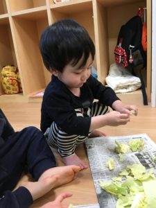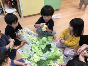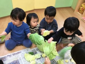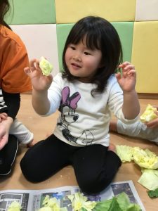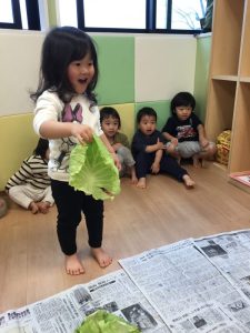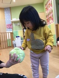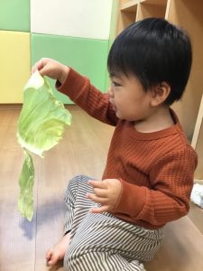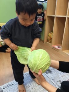 「キャベツさんお洋服着てるよ!脱がせてあげよう!」と