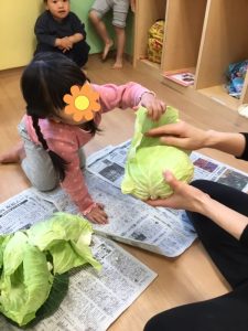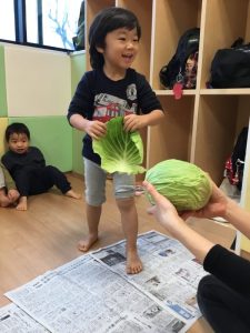 「キャベツさんお洋服着てるよ!脱がせてあげよう!」と