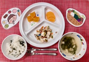 サンライズキッズ保育園 ◎給食の様子 「おいもいっぱい!!」と嬉しそうに給食を食べてく...