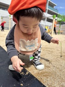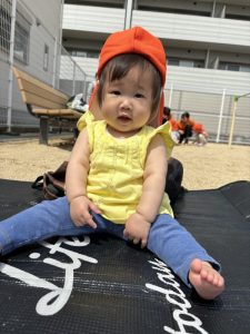 砂を触ってみたりとゆったりと過ごすもも組お友だち![]()