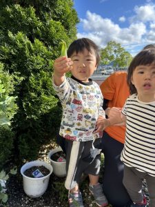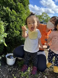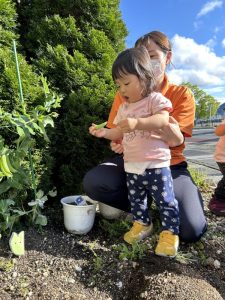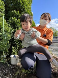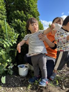 保育者と一緒に収穫してみると…