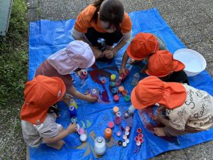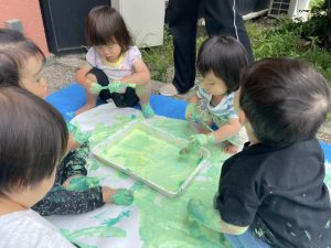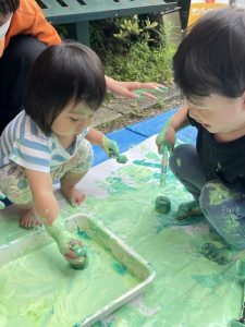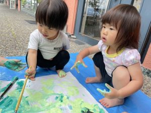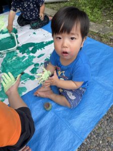最初は、手のひらについた絵の具を気にするお友だちもいましたが