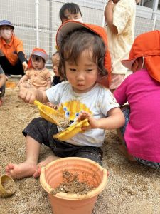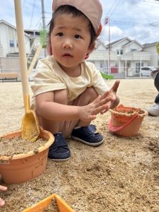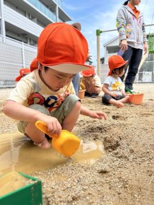 少し苦手なお友だちは、砂場遊びを楽しみました😊