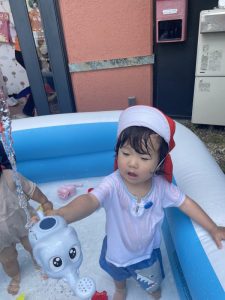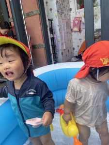 お友だちと水の掛け合いっこを楽しんだりしていました💦