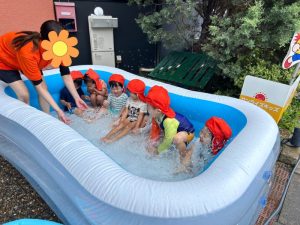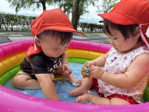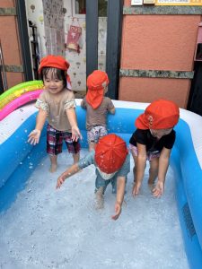 今月から始まった水遊びの様子を紹介したいと思います![]()