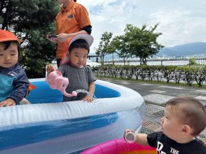 もも組のお友だちにシャワーを掛けてあげたり🚿
