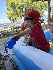 最後のプール遊びを楽しむ子どもたちの様子を紹介したいと思います!