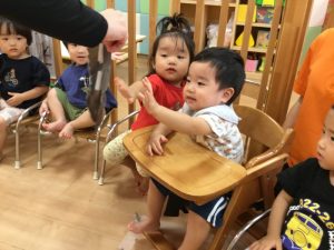 名前を呼ばれると元気よく返事をして前に出てきてくれるお友だち!