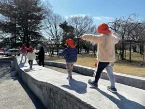 両手を広げてバランスをとりながら歩いたり…