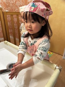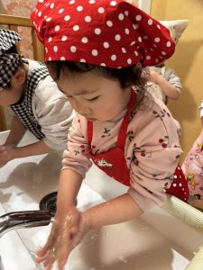 「あれ?おててバイキン付いてる!」