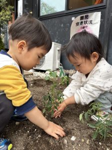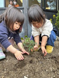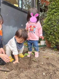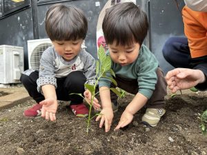 いちご組のお友だちと苗植えに挑戦してみましたが…まだまだ難しく(><)