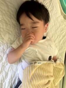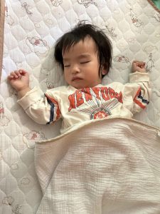 お昼寝の時間になると自らコットに横になりに行ってくれています✊