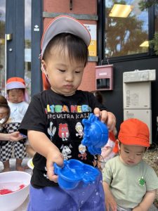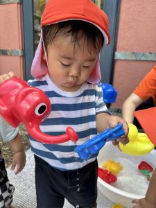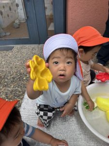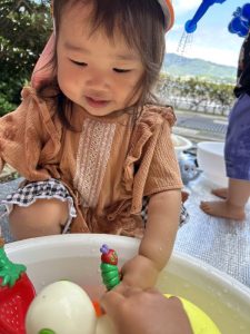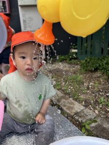 顔に水がかかると泣いてしまうお友だちが多かったのですが