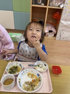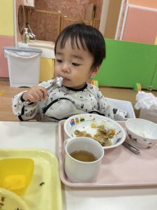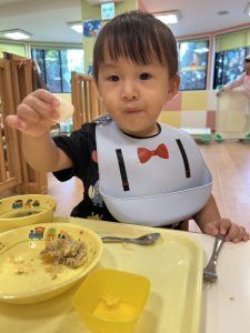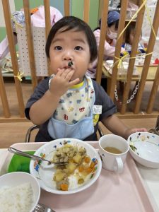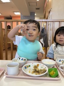 自分で食べてみようと手掴み食べをするお友だちが増えてきましたよ![]()