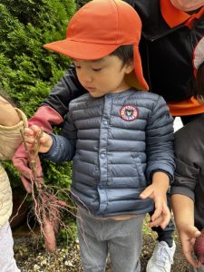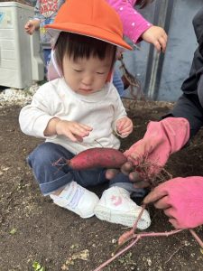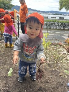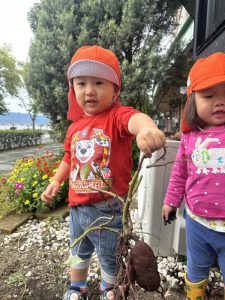 収穫できたサツマイモを嬉しそうに見せてくれていました![]()