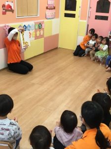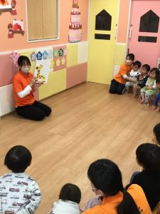 最後は保育者の出し物のスケッチブックシアターを見ました👀