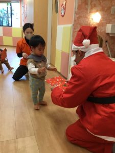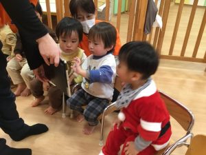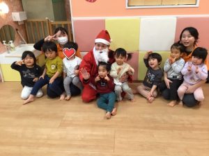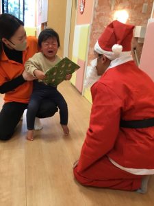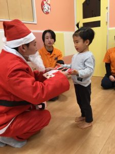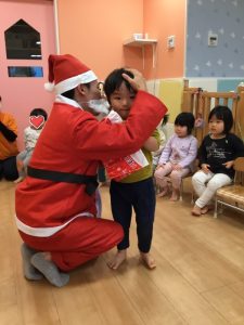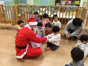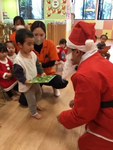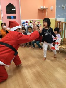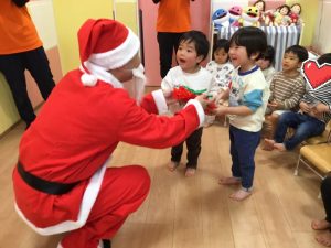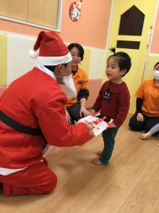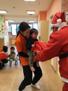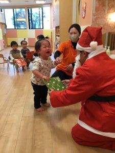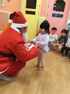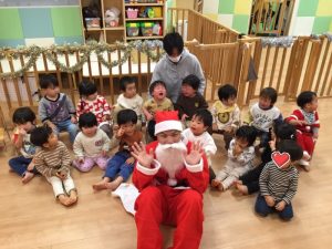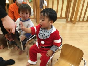 りんご組のお友だちは大喜びでサンタさんの元へ![]()