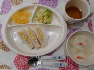 ☆2月20日(火)☆ ・シーフードチャウダー ・サラダ ・卵サンド ・みかん