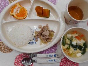 ☆2月28日(水)☆ ・ご飯 ・中華風かきたまスープ ・豚肉の生姜焼き風 ・南瓜の煮付 ・みかん &...