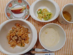 ☆2月27日(火)☆ ・ご飯 ・れんこんのふわふわ揚げ ・ブロッコリーのおひたし ・みそ汁 ・りんご