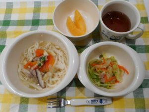 ☆2月24日(土)☆ ・みそ煮込みうどん ・野菜炒め ・オレンジ