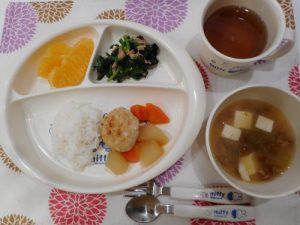 ☆2月15日(木)☆ ・ご飯 ・なめこの味噌汁 ・大根とつくねの煮物 ・ソテー ・みかん