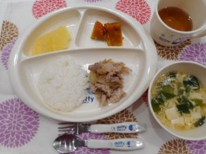 ☆2月14日(水)☆ ・ご飯 ・中華風かき玉スープ ・豚肉の生姜焼風 ・南瓜煮付 ・パイン缶