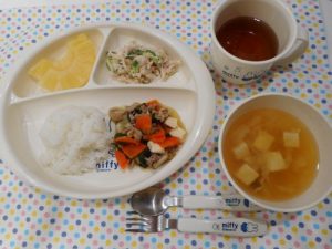 ☆2月8日(木)☆ ・ごはん ・豆腐と葱の味噌汁 ・青菜の炒め物 ・切干大根の胡麻酢あえ ・パイン缶