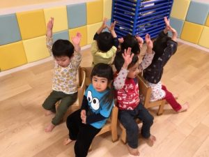 音楽が止まったら椅子に座るという流れを教えました。