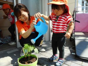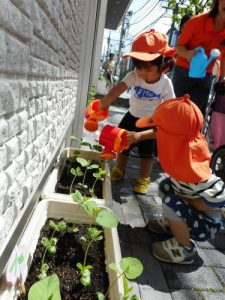「大きくなぁれ♪大きくなぁれ♪大きくなぁれ♪」みんなで言いながら水やりをしてくれています?