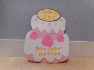 みんなで「ハッピーバースデー」の歌をうたってお祝いしてもらって、とっても嬉しそうにしていましたよ♪