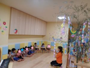 みんなで笹を見ながら座って《たなばたさま》のお歌をうたいました♪