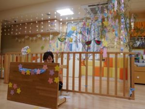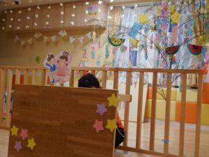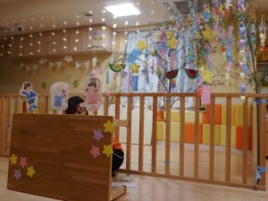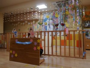 子ども達の作った飾りを付ける用に室内に飾ったら一気に七夕の雰囲気が出ました?